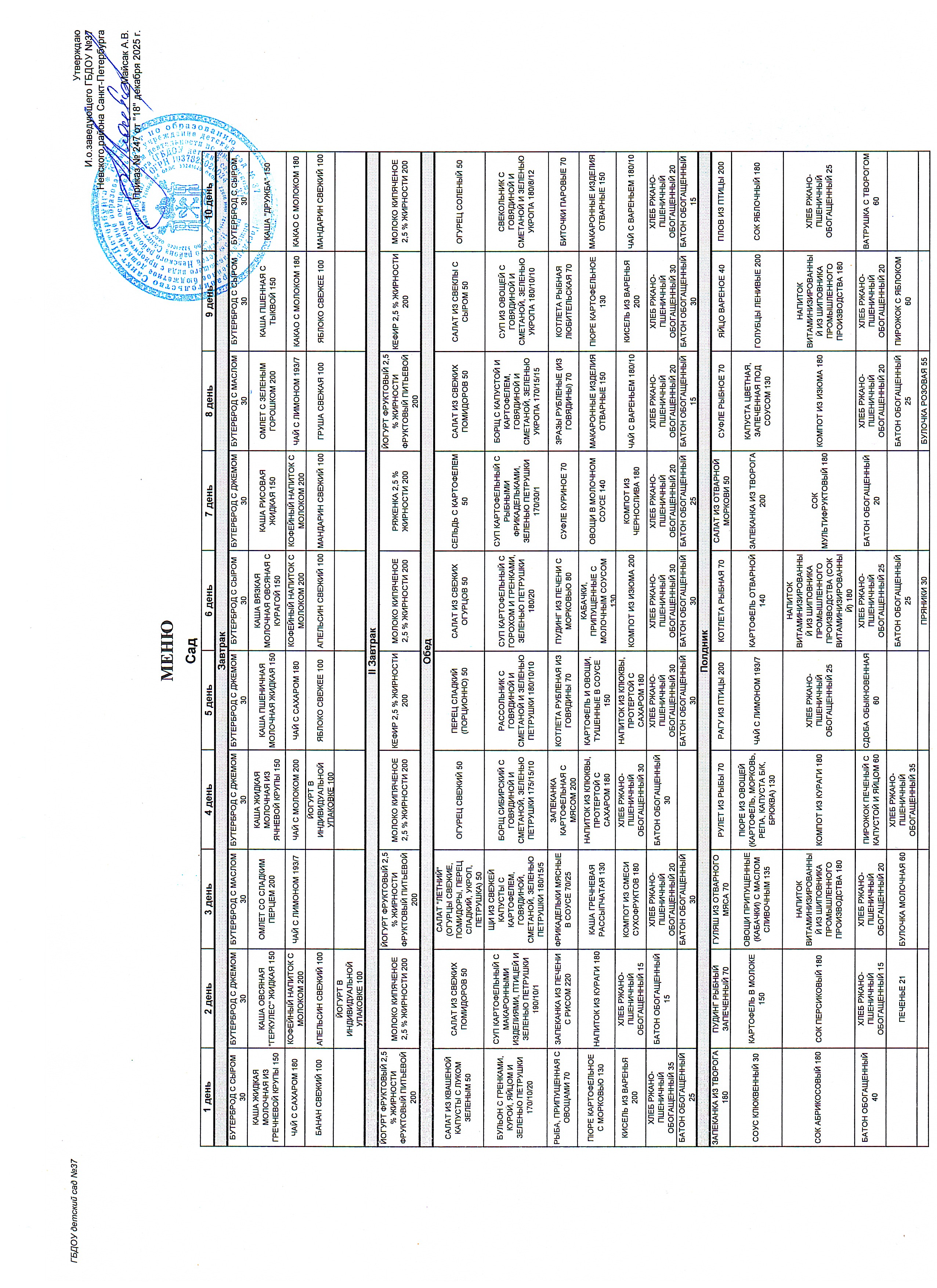 Десятидневное меню